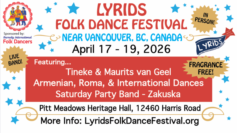 | $70Tineke van Geel is teaching this year “Armenia & beyond”, and the Saturday night bands are Zakuska from Seattle and Trio Tsuica from Portland. There are dance workshops Sat and Sun, plus a singing workshop on Saturday afternoon, taught by Jana Rickles.